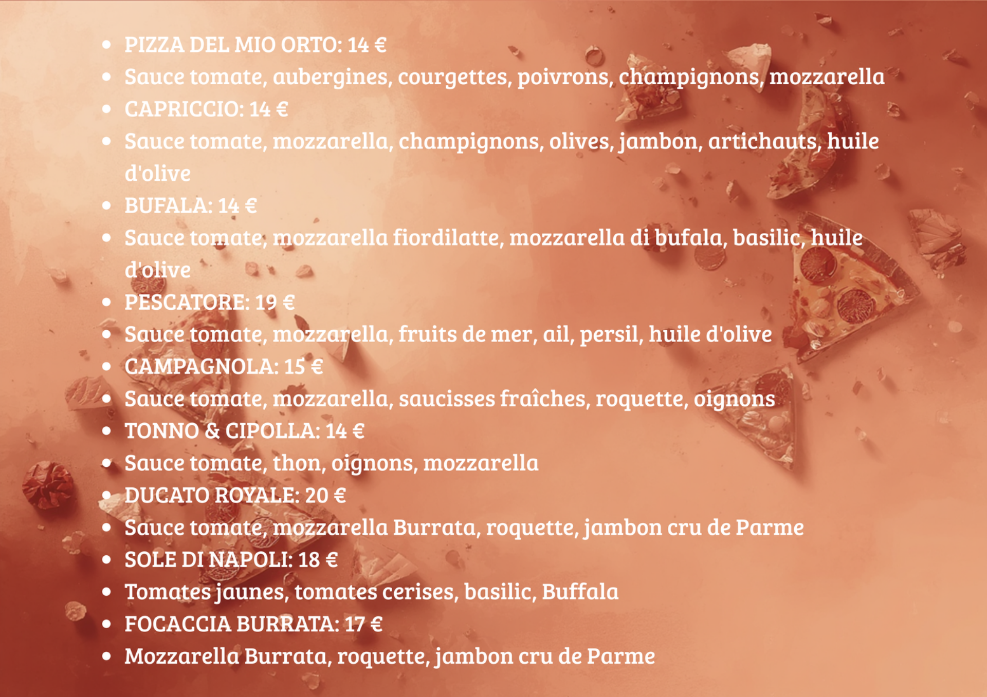 Menù pizza